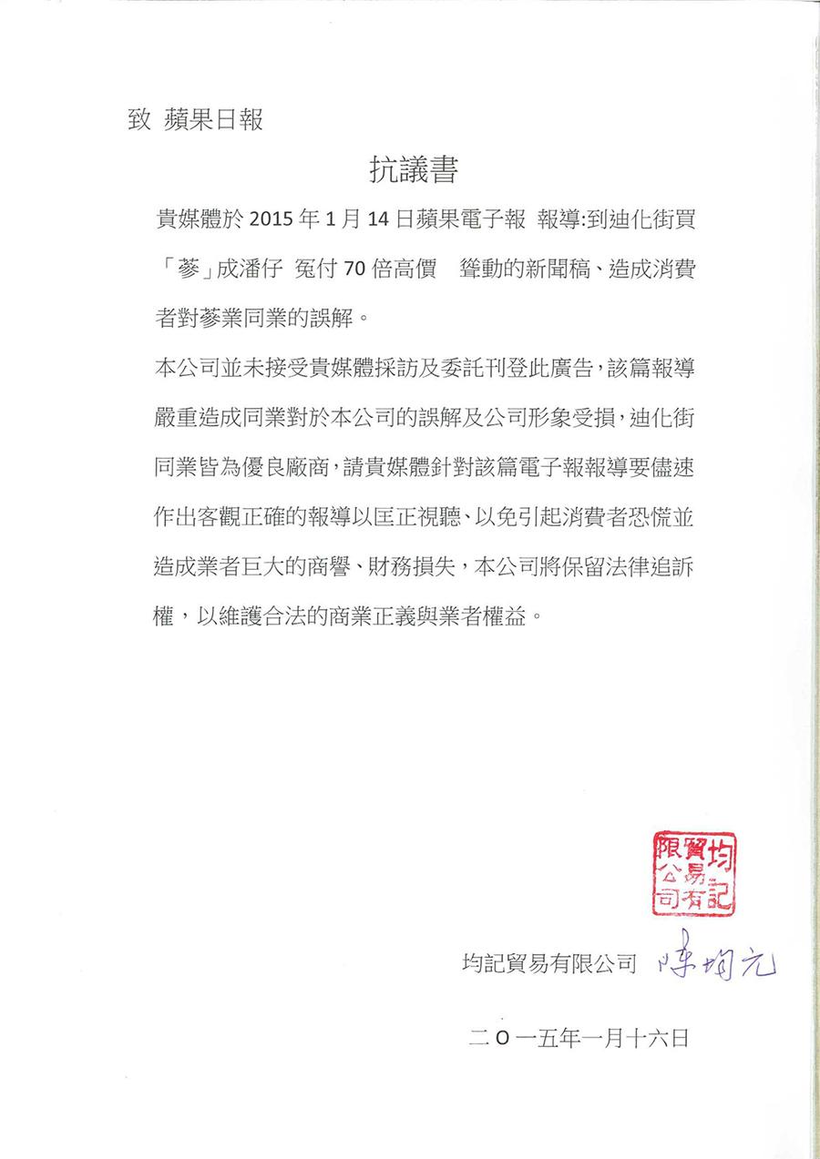 有關於蘋果電子報 於2015年1月14日 報導:有關到迪化街買